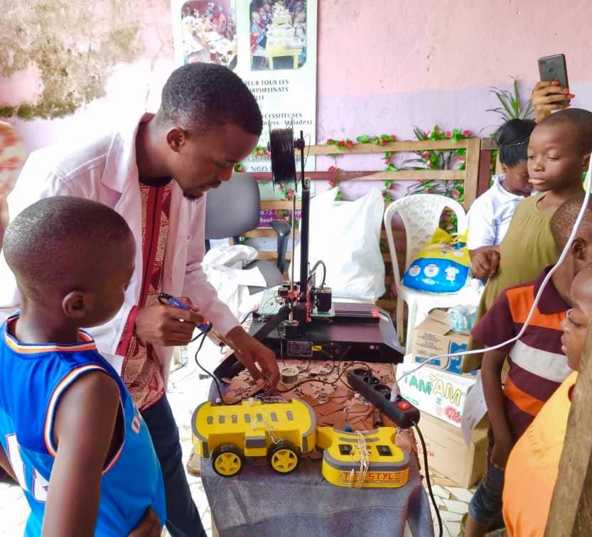 We introduce children in institutional care to the world of technology through partnerships like our collaboration with CODAM Technology, a Douala-based startup. Together, we hosted hands-on tech workshops — including 3D printing demonstrations and basic coding workshops — that gave children their first exposure to digital tools, expanding their sense of what’s possible.
